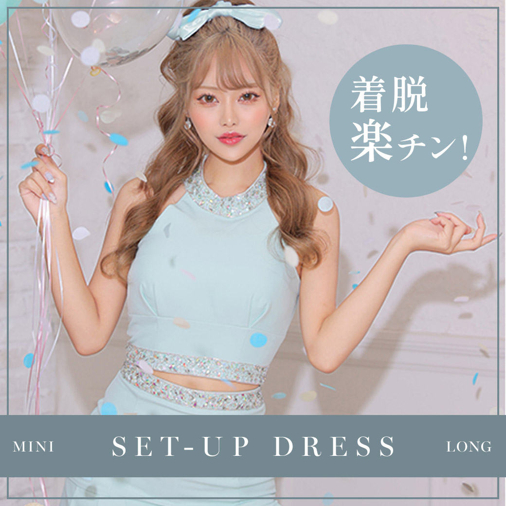 ビジュ リボン ワンカラー セットアップ マーメイド