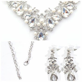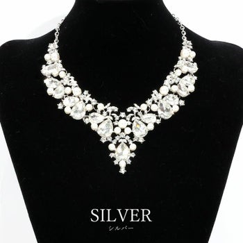 3. 【Angel R/エンジェルアール】リーフモチーフ パールビジュー ストーンアクセサリー2点セット(ネックレス+ピアス)(NE108YC)