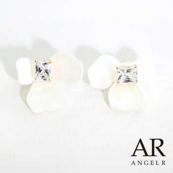 華やかな印象のピアス☆ 【Angel R/エンジェルアール】フラワーモチーフ スクエア ストーンピアス(PI032LF)