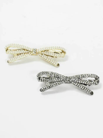 ヘアアクセサリー Angel R エンジェルアール パール ビジュー リボンデザイン フェミニン バレッタ