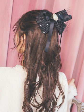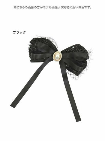 3. 【LaLaTulle】ツイード メッシュブラックリボン パール バレッタ ヘアアクセサリー