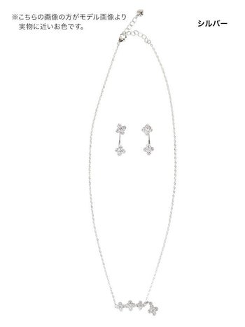 上品で可愛らしいデザイン♪ 【LaLaTulle】フラワーモチーフ キラキララインストーン ビジュー アクセサリー2点SET (ネックレス+ピアス)