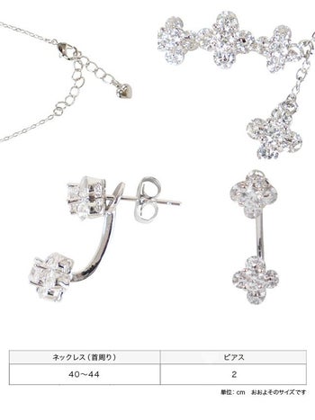 フラワーモチーフ ラインストーン ビジュー アクセサリー2点SETのサイズ表