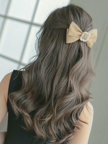 華やかさもしっかり演出できる♪ 【LaLaTulle】リボンバレッタ バックルパール ヘアアクセサリー