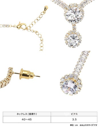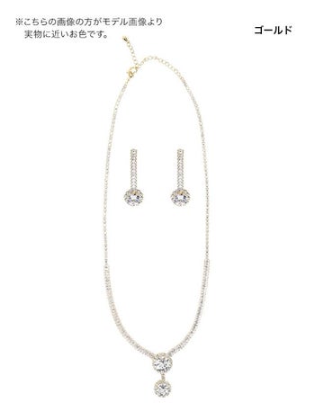 小ぶりながらもキラキラで存在感溢れる♪ 【LaLaTulle】ゴールド ラウンドビジュー アクセサリー 2点セット(ネックレス+ピアス)