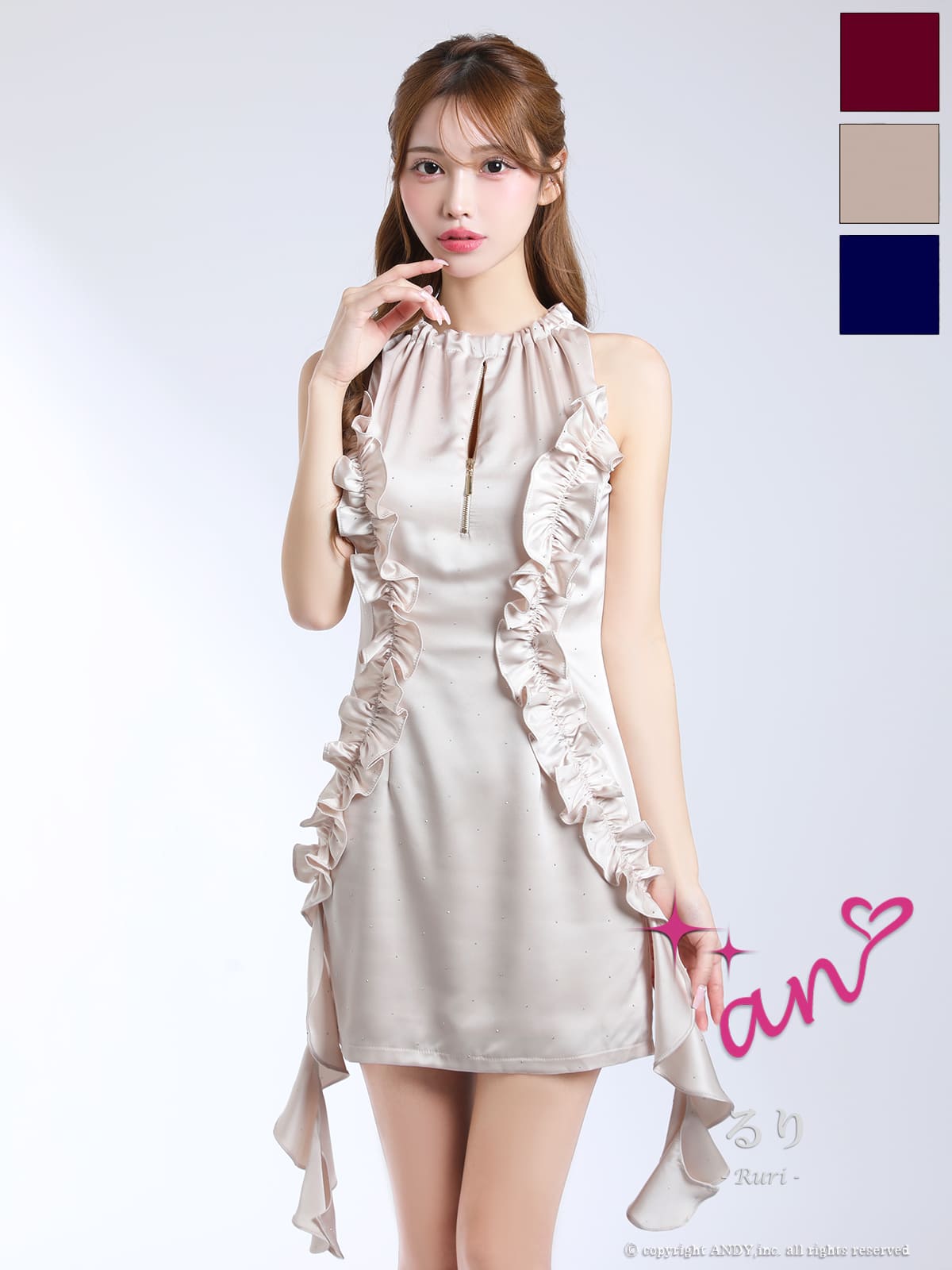 他の画像を見る XSあり!フリルが可愛いミニドレス♡ 【an/アン】ホルターネック ジップデザイン バストカット フリル ワンカラー タイトミニドレス(aoc4031) ¥ 26,400 税込 詳細を見る お気に入りに登録する