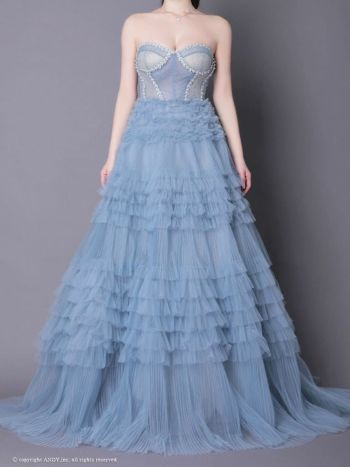 4. 【couture an/クチュール アン】ベアトップ シフォン フリル コルセット風 レースアップ バースデー Aラインロングドレス(aocwd012)