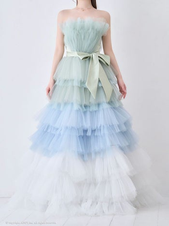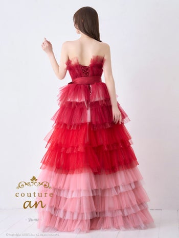 4. 【couture an/クチュール アン】ガーリー オフショルダー リボン シフォン 立体 バースデー レースアップ Aラインロングドレス(aocwd026)
