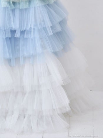 3. 【couture an/クチュール アン】ガーリー オフショルダー リボン シフォン 立体 バースデー レースアップ Aラインロングドレス(aocwd026)