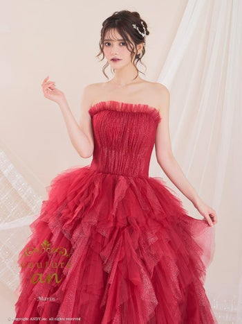 4. 【couture an/クチュール アン】ワンカラー フリル ベアトップ チュール レースアップ バースデー Aラインロングドレス(aocwd051)