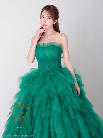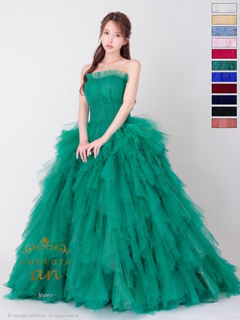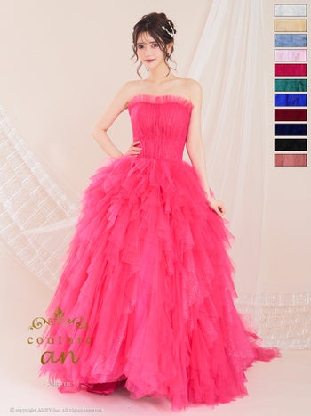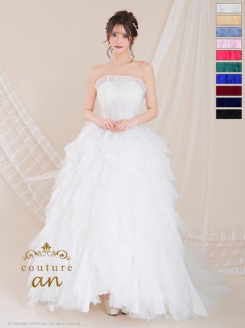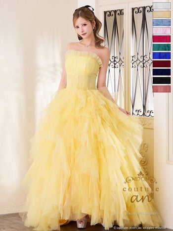 ティアードデザインで豪華に☆ 【couture an/クチュール アン】ワンカラー チュール フリル レースアップ ベアトップ バースデー Aラインロングドレス(aocwd051)