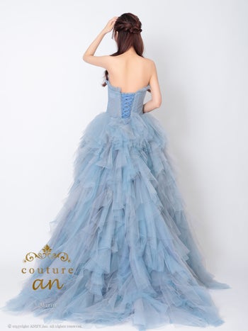 3. 【couture an/クチュール アン】ワンカラー チュール フリル レースアップ ベアトップ バースデー Aラインロングドレス(aocwd051)