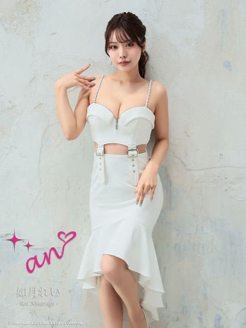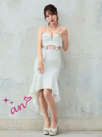 キャバドレス 膝丈ドレス an アン ジップデザイン ベルト キャミソール カットデザイン マーメイド テールカット チェーン