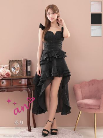 キャバドレス an ビジュー キャミソール ドット柄 ジップデザイン フリル ロングテールドレス