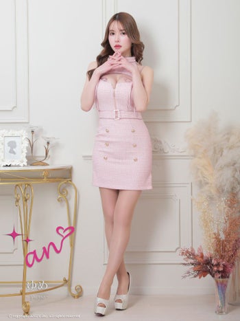 キャバドレス an アン フロントジップ リボン カットアウト ツイード ノースリーブ ハイネック タイトミニドレス
