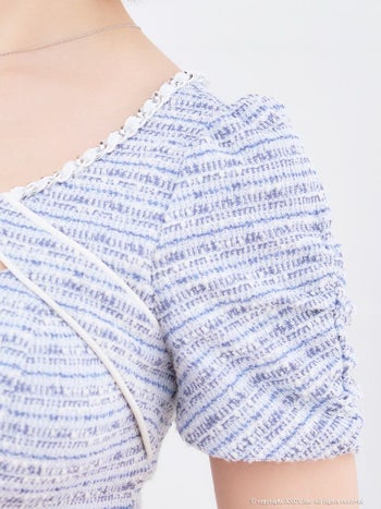 4. 【an/アン】ポケット風 ツイード ジップデザイン パールボタン チャーム 半袖 タイトミニドレス(aoc3705)