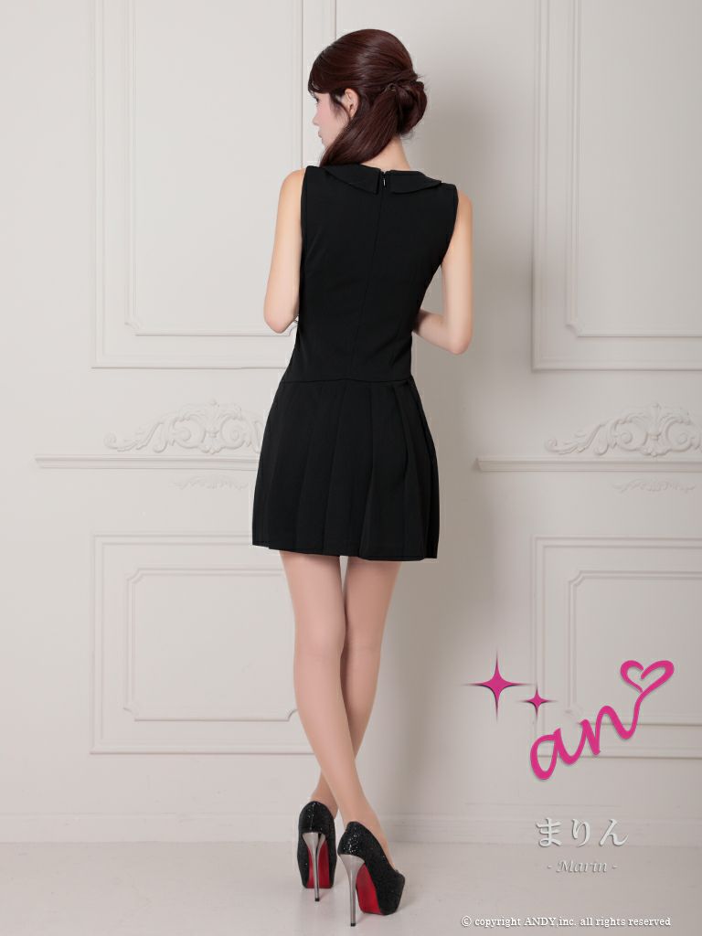 キャバドレス フレアミニドレス an アン ワンカラー 襟付き プリーツ フレア 飾りボタン 飾りベルト ノースリーブ