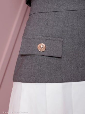 ガーリー ノースリーブ バストカット ジップデザイン バイカラー ボタン プリーツ セットアップ フレアミニドレスの詳細画像3