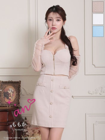 キャバドレス タイトミニドレス an アン ノースリーブ 飾りポケット 飾りボタン ジップデザイン セットアップ 長袖 肩あき