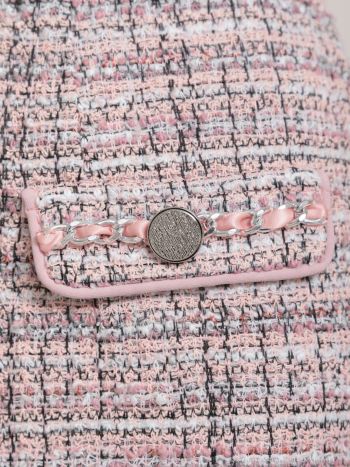 チュールスリーブ ツイード リボン ジップデザイン 飾りポケット キャミソール タイトミニドレスのメイン画像3