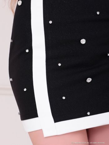 4. 【an/アン】ノースリーブ ジップデザイン ビジュー セットアップ バイカラー スクエアネック タイトミニドレス(aoc3885)