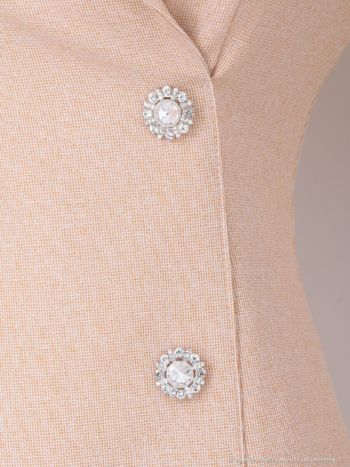 襟付き 袖あり パフスリーブ ビジューボタン プリーツ Vカット フレアミニドレスのメイン画像3