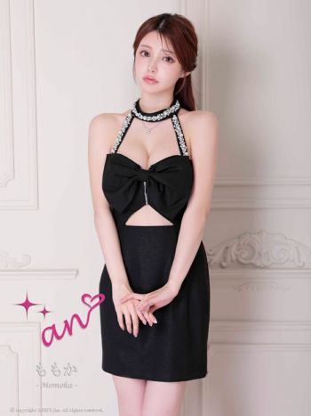 3. 【an/アン】リボン バストジップ ワンカラー ホルターネック ビジュー タイトミニドレス(aoc3904)