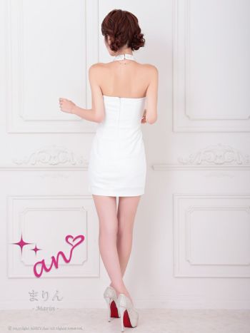 キャバドレス an アン リボン バストジップ ワンカラー ホルターネック ビジュー タイトミニドレス