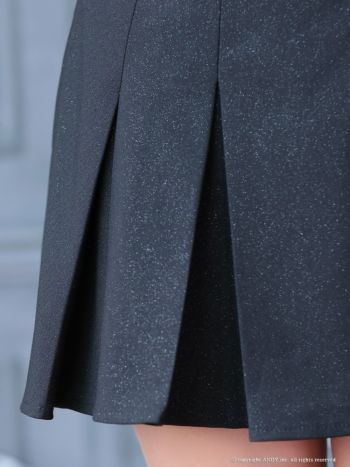 4. 【an/アン】ノースリーブ 長袖 ジップデザイン セットアップ ハイネック ワンカラー ビジューボタン プリーツ フレアミニドレス(aoc3919)