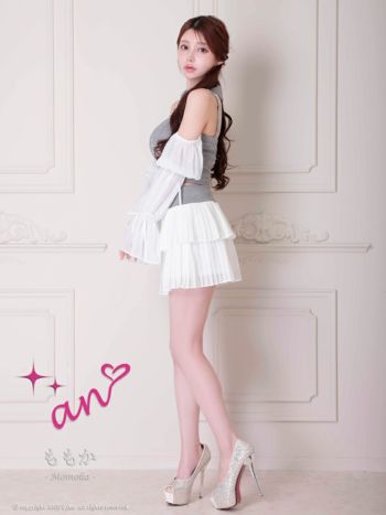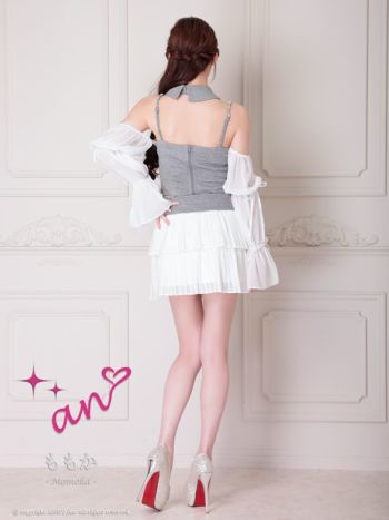 キャバドレス an アン ビジュー シフォン 襟 3way セットアップ キャミソール 袖あり フレアミニドレス
