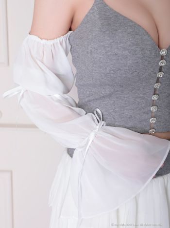 ビジュー シフォン 襟 3way セットアップ キャミソール 袖あり フレアミニドレスのメイン画像15