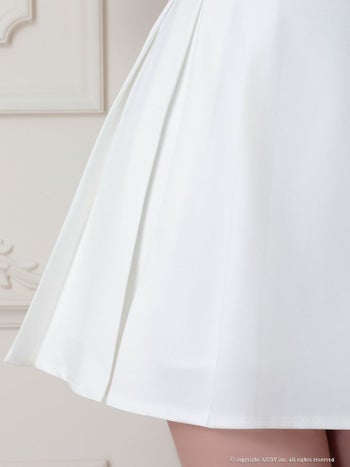 4. 【an/アン】セットアップ ノースリーブ Vカット 襟付き ワンカラー ビジューボタン プリーツ 飾りポケット フレアミニドレス(aoc3927)