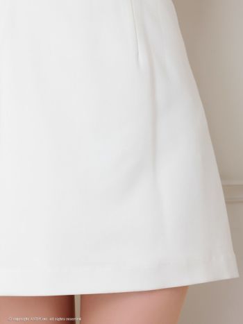 くびれ透け スクエアネック リボン バストジップ ビジュー 袖あり フレアミニドレスのメイン画像3