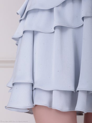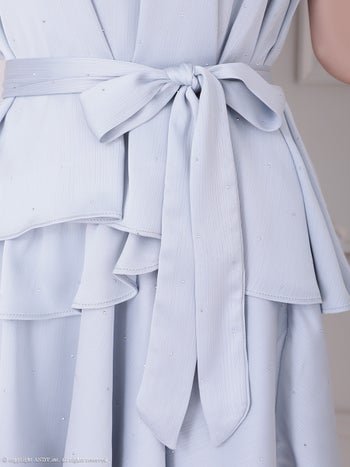 3. 【an/アン】ウエストリボン ノースリーブ セットアップ ジップデザイン フリル ビジュー フレアミニドレス(aoc3946)