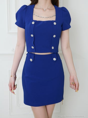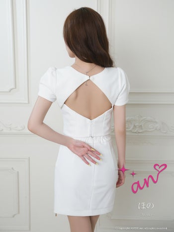 4. 【an/アン】セットアップ 半袖 ジップデザイン スリット スクエアネック パフスリーブ バックオープン ボタン タイトミニドレス(aoc3975)