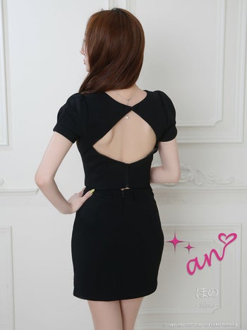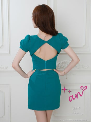 キャバドレス an セットアップ 半袖 ジップデザイン スリット スクエアネック パフスリーブ バックオープン ボタン タイトミニドレス