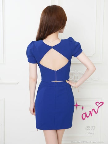 キャバドレス an セットアップ ジップデザイン スリット 半袖 スクエアネック パフスリーブ バックオープン ボタン タイトミニドレス