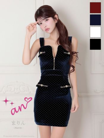 キャバドレス an ノースリーブ ジップデザイン ドット柄 ベロア チェーン タイトミニドレス