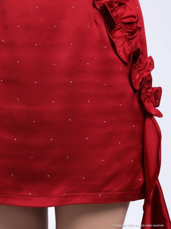 ホルターネック ジップデザイン バストカット フリル ワンカラー タイトミニドレスのメイン画像3