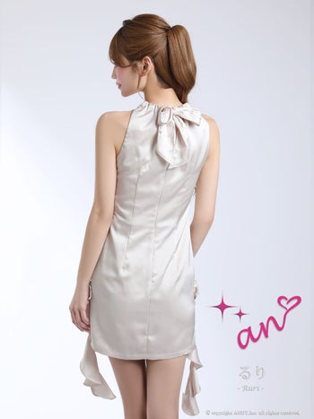 XSあり!後ろのリボンがcute♡ 【an/アン】バストカット ジップデザイン ホルターネック フリル ワンカラー タイトミニドレス(aoc4031)