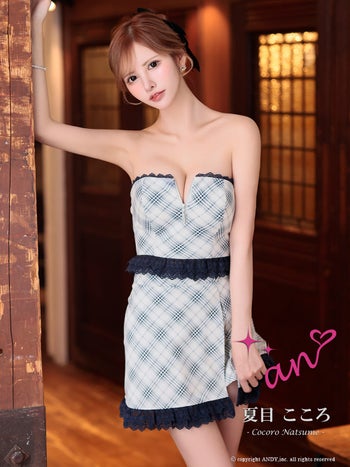 キャバドレス an キャミソール ベアトップ セットアップ ジップデザイン チェック柄 レース フリル フレアミニドレス