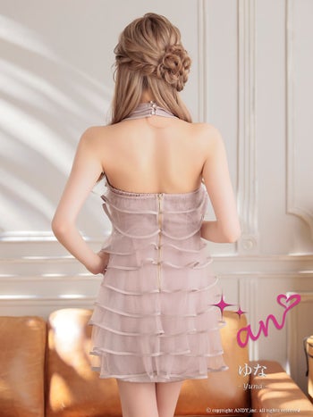 キャバドレス an ジップデザイン ホルターネック チュール ティアード フリル フレアミニドレス