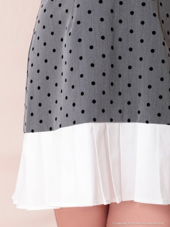 ノースリーブ ジップデザイン ドット柄 プリーツ 襟付き Vネック フレアミニドレスの詳細画像2