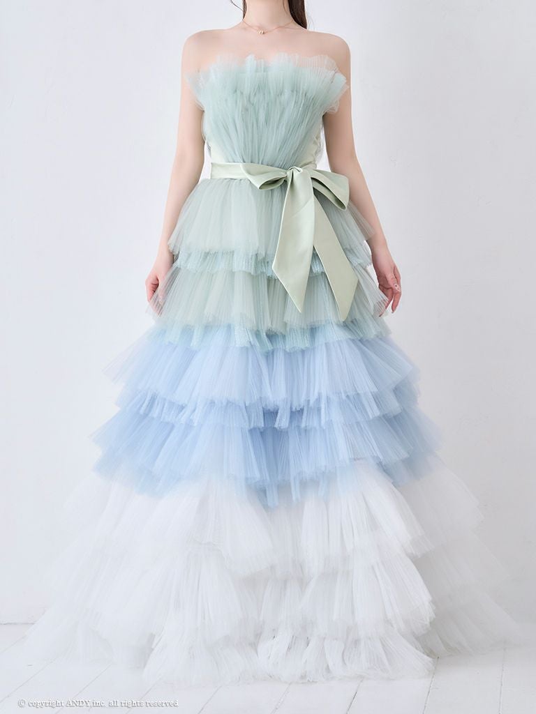 他の画像を見る チュールのデザインでお洒落見え♪ 【couture an/クチュール アン】ワンカラー ウエストリボン ベアトップ フリル チュール レースアップ バースデー Aラインロングドレス(aocwd017) ¥ 143,000 税込 詳細を見る お気に入りに登録する