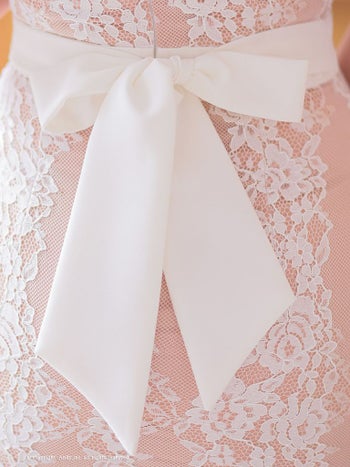 フラワーレース ワンカラー テールカット リボン シアー マーメイド オフショルダー 半袖 膝丈ドレスの詳細画像4