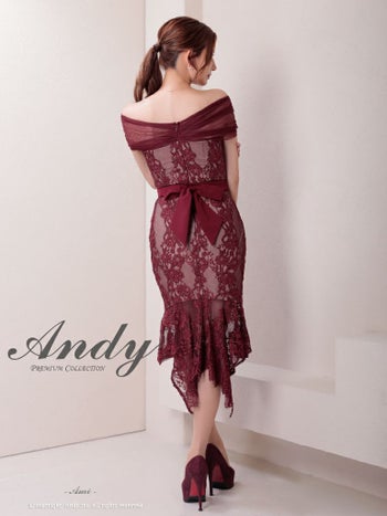 3. 【Andy/アンディ】ワンカラー フラワーレース テールカット リボン シアー マーメイド オフショルダー 膝丈ドレス(anon2861)