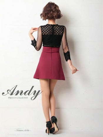 Andy[アンディ]シアーレース バイカラー 七分袖 フレア ミニドレス[2209]