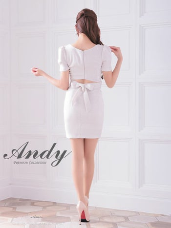 3. 【Andy/アンディ】バックリボン ジップデザイン セクシー スクエアネック ワンカラー 半袖 タイトミニドレス (anon2846)