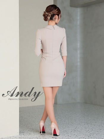 4. 【Andy/アンディ】ボタン スリット ワンカラー 襟デザイン 袖あり タイトミニドレス(anon2869)