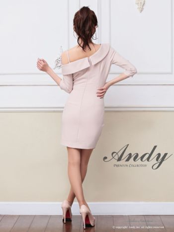 3. 【Andy/アンディ】袖あり 襟 ワンカラー ワンショルダー ウエストベルト ラップスカート タック タイトミニドレス(anon2897)